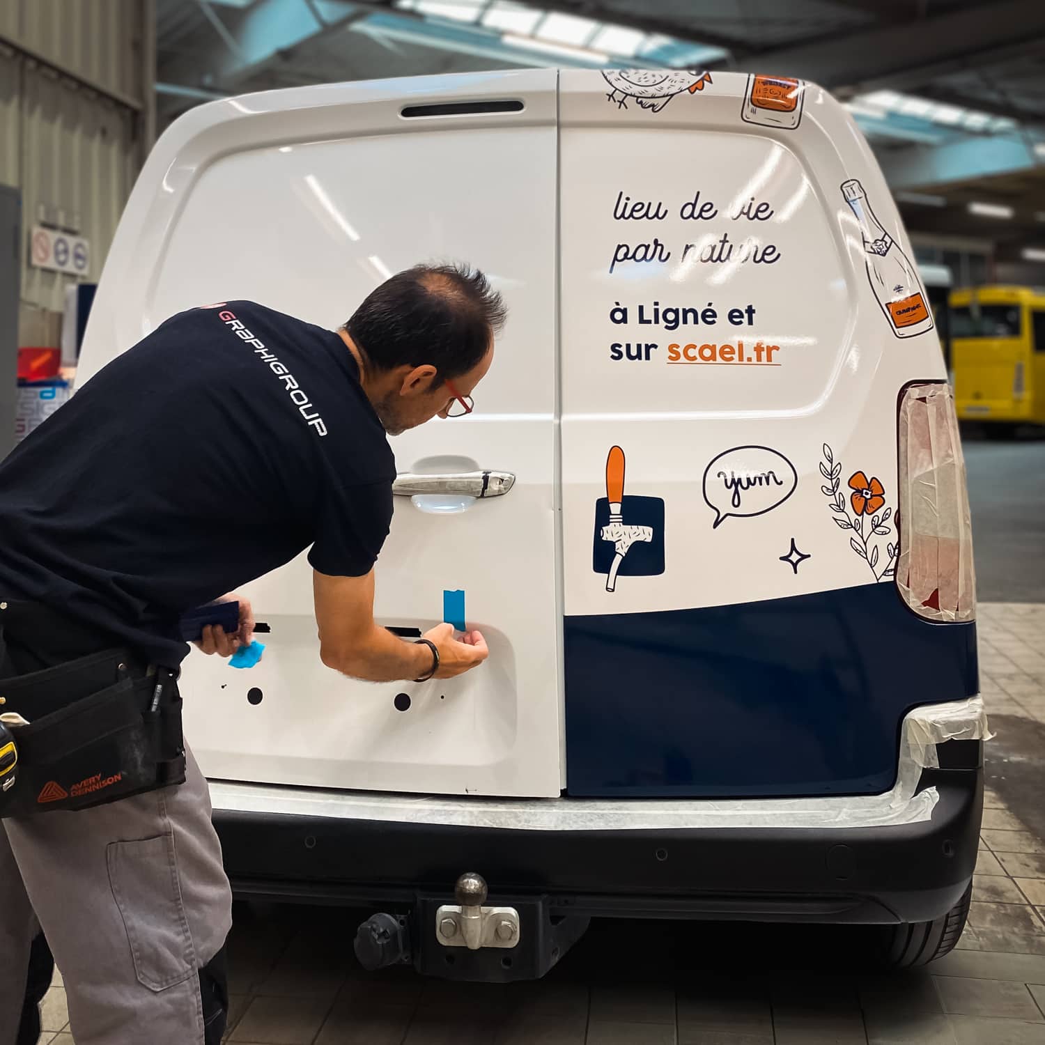 La pose s’effectue en atelier tempéré, par nos techniciens spécialisés en covering véhicule. Chaque surface est préparée, chaque découpe respecte les lignes de carrosserie. Résultat : un habillage homogène, sans bulle ni défaut.