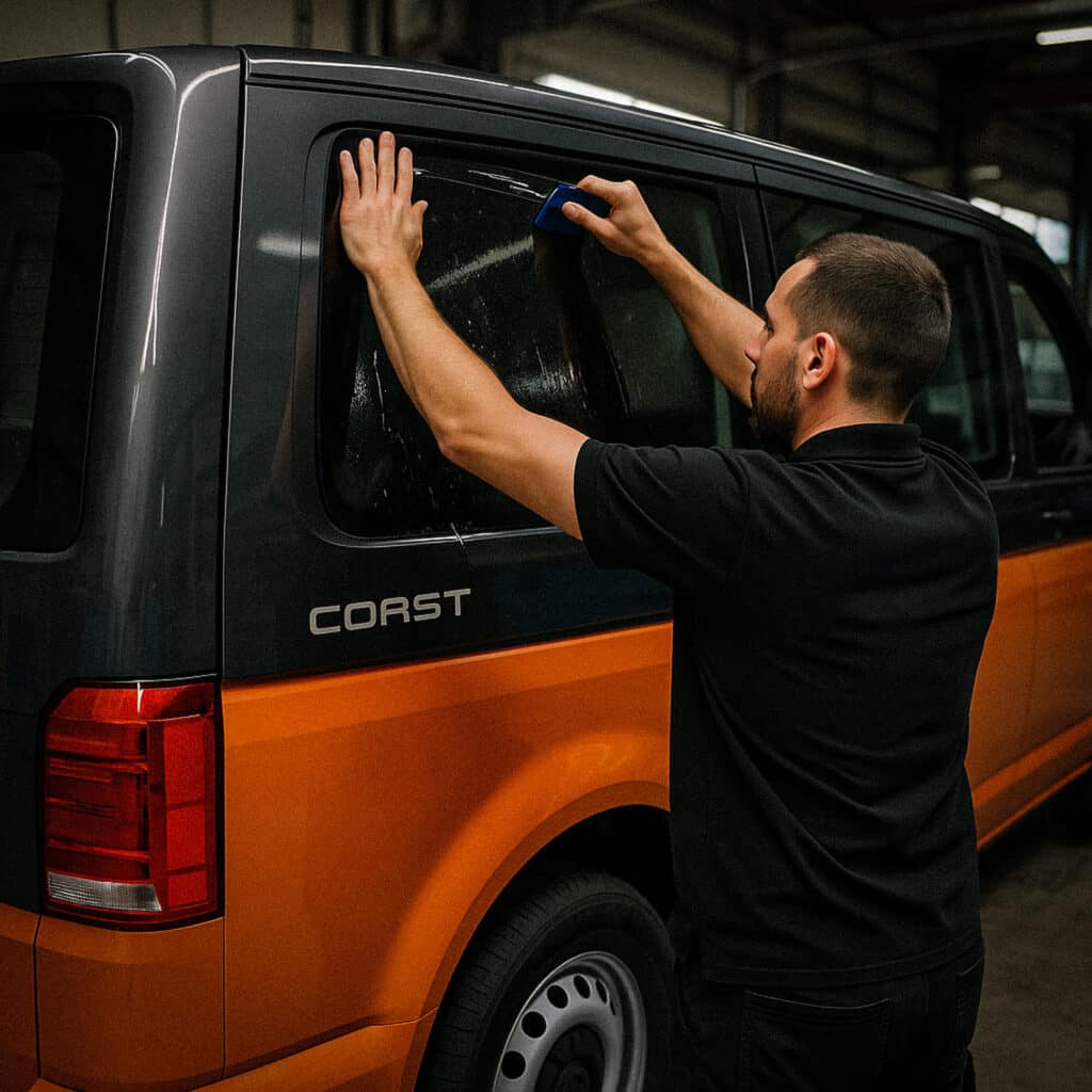 Tout dépend du niveau de finition souhaité. Sur des vitres simples et planes, la pose est accessible avec un peu de méthode. Pour les vitrages incurvés, mieux vaut faire appel à un professionnel pour éviter les plis ou bulles.