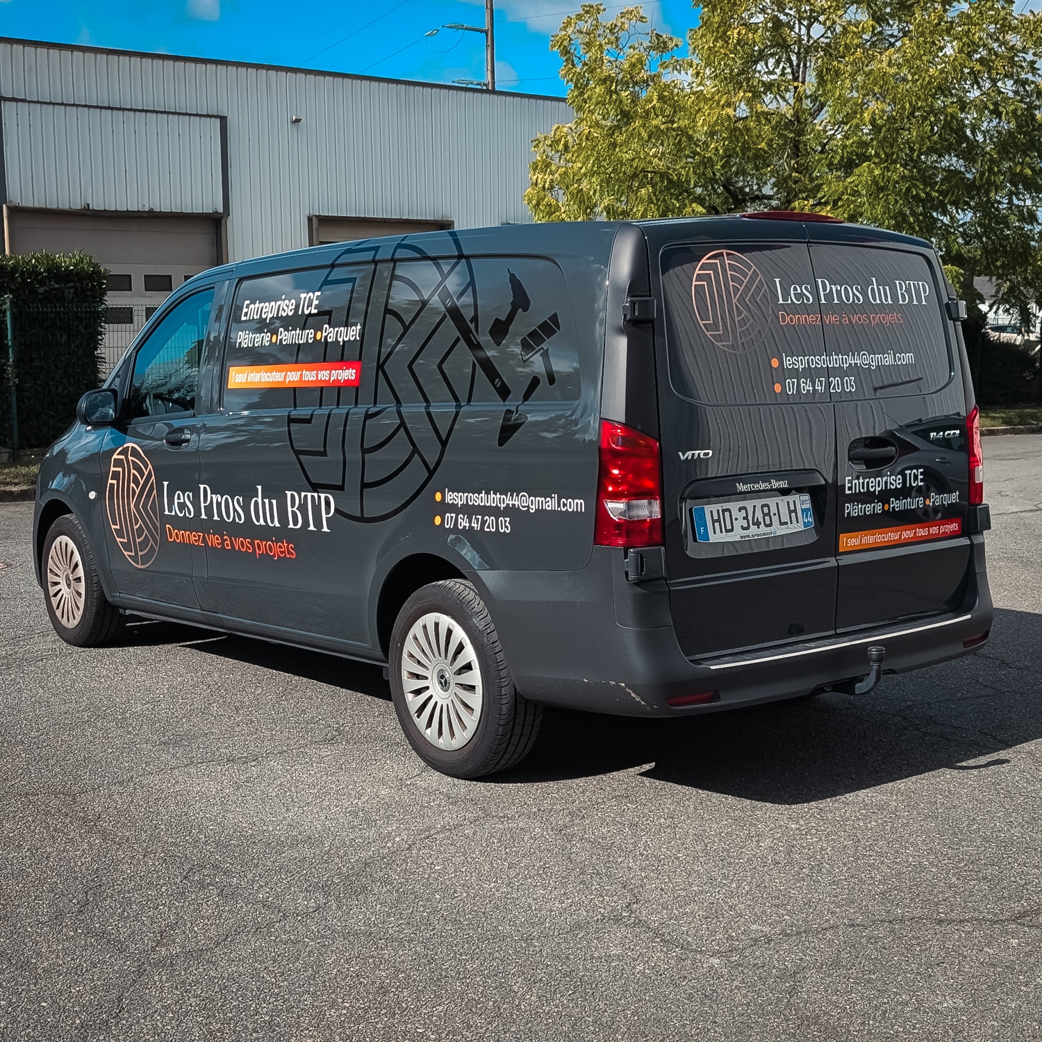 Ce flocage d’utilitaire s’étend sur les panneaux latéraux, l’arrière et parfois le capot, selon la configuration du modèle.