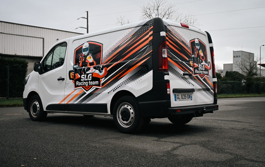 Dès qu’il arrive sur un circuit, un utilitaire donne le ton. Pour ce covering utilitaire pour équipe de sport, SLG Racing Team voulait un Renault Trafic identifiable au premier coup d’œil, sans confusion possible dans un paddock chargé. L’équipe souhaitait professionnaliser sa présentation face aux concurrents et partenaires. Le marquage devait refléter l’univers racing : dynamisme, précision et cohérence graphique.