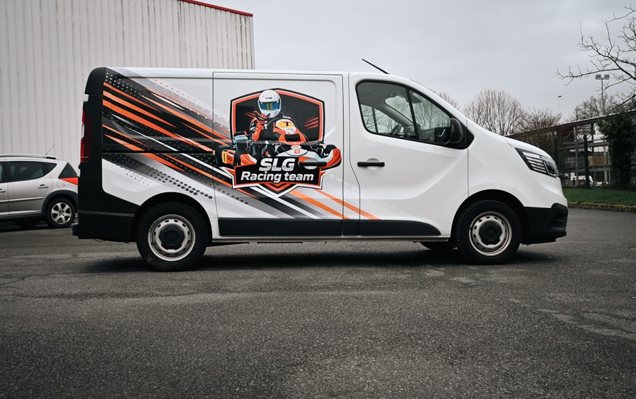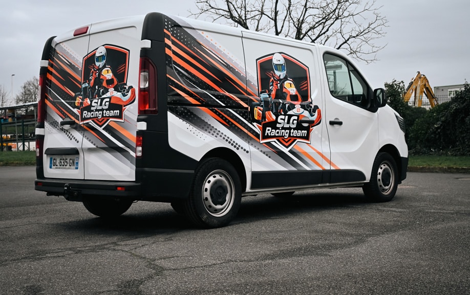 Dans l’univers du karting, chaque détail compte. Un paddock regroupe dizaines d’équipes, véhicules techniques, tentes et structures. Le covering utilitaire pour équipe de sport devait permettre au SLG Racing Team de se démarquer immédiatement à l’arrivée sur site.