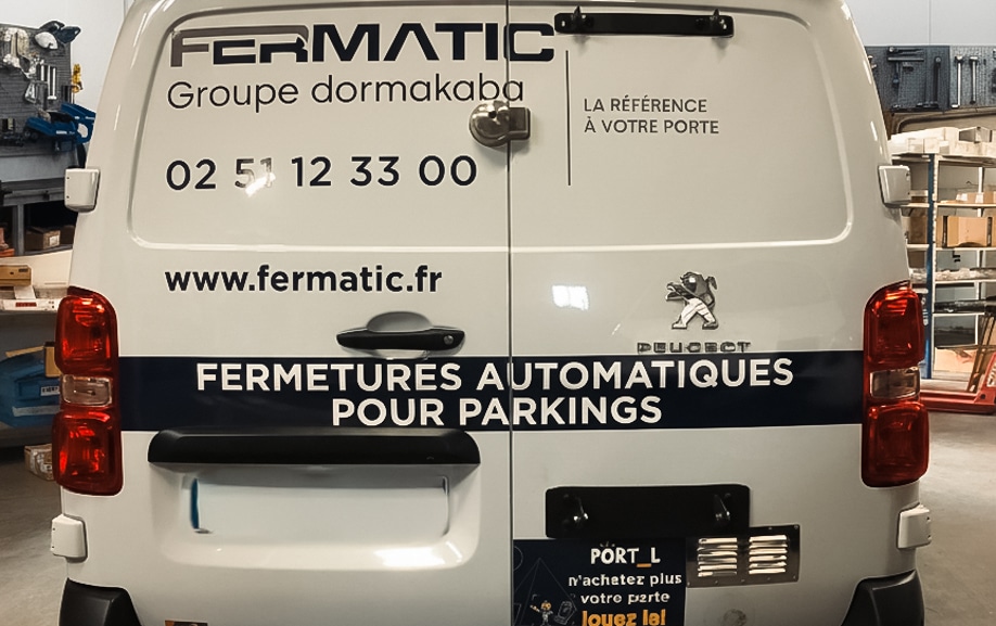 FERMATIC, filiale du groupe Dormakaba, intervient sur des systèmes de fermetures automatiques pour parkings et accès sécurisés. Les équipes opèrent quotidiennement sur des sites sensibles : parkings publics, immeubles tertiaires, sites industriels ou bâtiments recevant du public. Dans ce contexte, les camions de l’entreprise doivent être clairement identifiés, aussi bien pour des raisons de sécurité que de crédibilité auprès des exploitants et gestionnaires de sites.