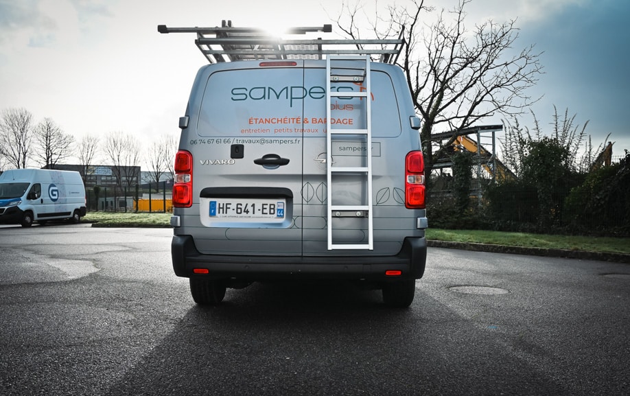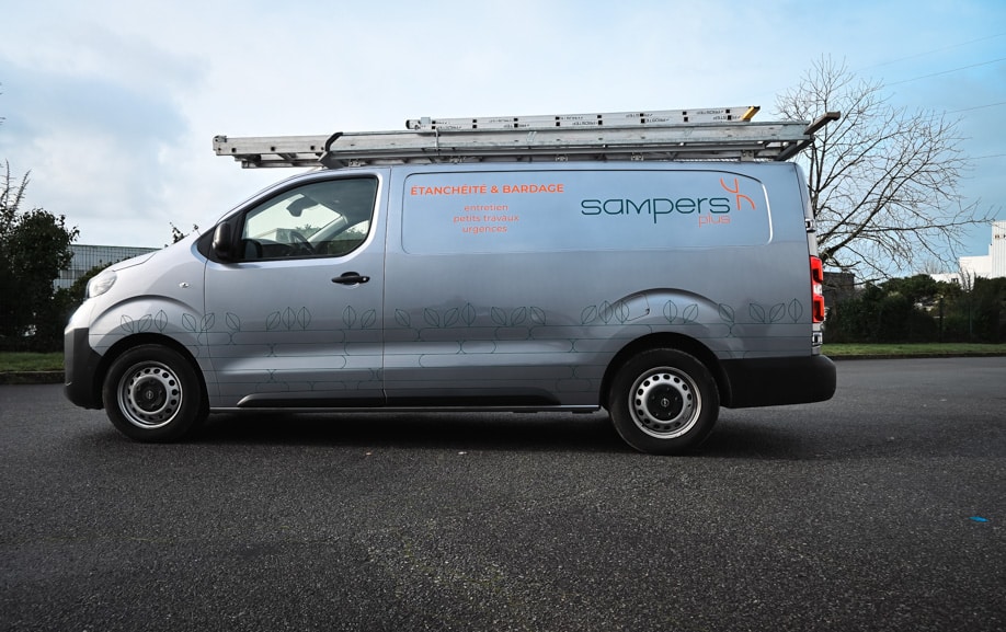 Sampers+ intervient au quotidien sur des opérations d’entretien, de diagnostic, de petits travaux et de recherche de fuites. Ces prestations exigent des déplacements fréquents, souvent en environnement urbain ou industriel, avec un véhicule utilitaire pleinement équipé pour l’intervention. L’Opel Vivaro concerné devait donc remplir un double rôle : rester un outil de travail fonctionnel tout en devenant un support de communication visible et crédible.