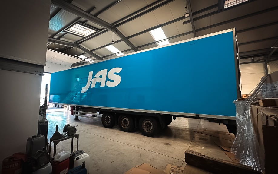 TRANS GOLD MARCHANDISES, acteur du transport routier de fret lourd, souhaitait renforcer la présence visuelle de ses véhicules sur les axes routiers. Pour l’une de ses semi-remorques, utilisée au nom de son client JAS, l’enjeu était double : améliorer la lisibilité de l’habillage à distance et garantir une identité visuelle claire, professionnelle et conforme à l’image de marque. Une problématique fréquente dans le secteur, où la remorque devient un support de communication roulant, visible à grande échelle.