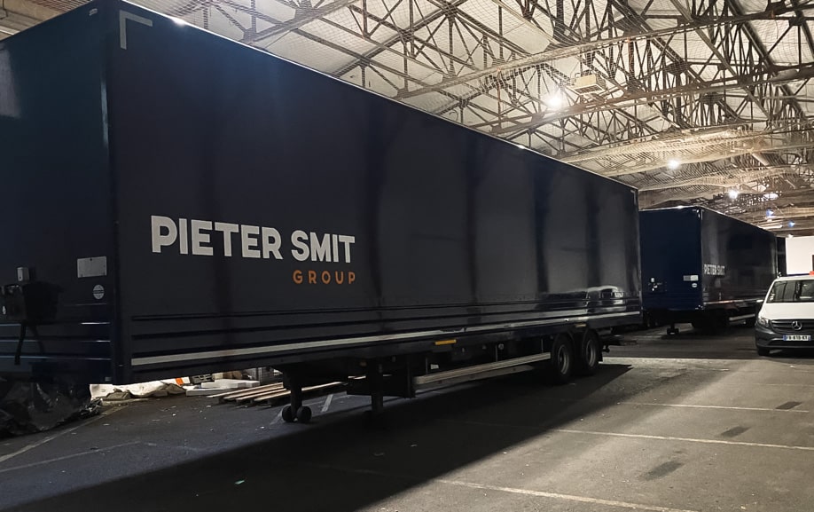 Spécialiste européen du transport pour l’industrie du spectacle, Pieter Smit Group gère une flotte conséquente de poids lourds et remorques dédiés aux tournées artistiques. Pour conserver une image professionnelle et homogène sur l’ensemble de ses véhicules, l’entreprise a souhaité procéder à une mise à jour graphique complète sur plusieurs remorques. L’enjeu : assurer une personnalisation poids lourd fidèle à leur identité visuelle, avec un rendu parfaitement adapté aux contraintes de circulation et d’usage intensif.